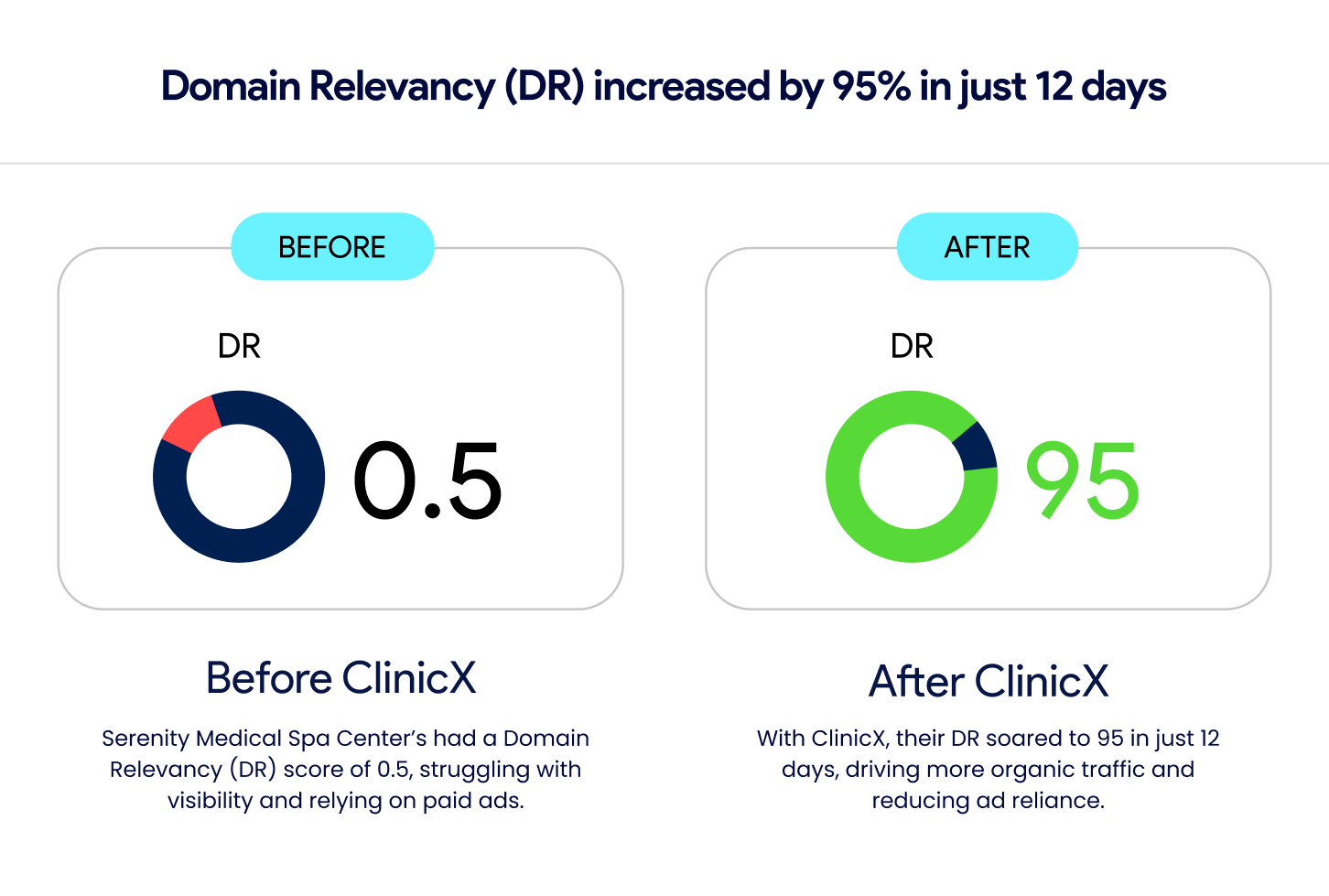 Explore How ClinicX’s AI-Powered Plugin Transformed Digital Marketing Strategies for Doctors, Surgeons, MedSpas, Wellness Clinics, and More. Discover the measurable results of our tailored solutions in boosting domain relevancy, driving traffic, and increasing conversions.